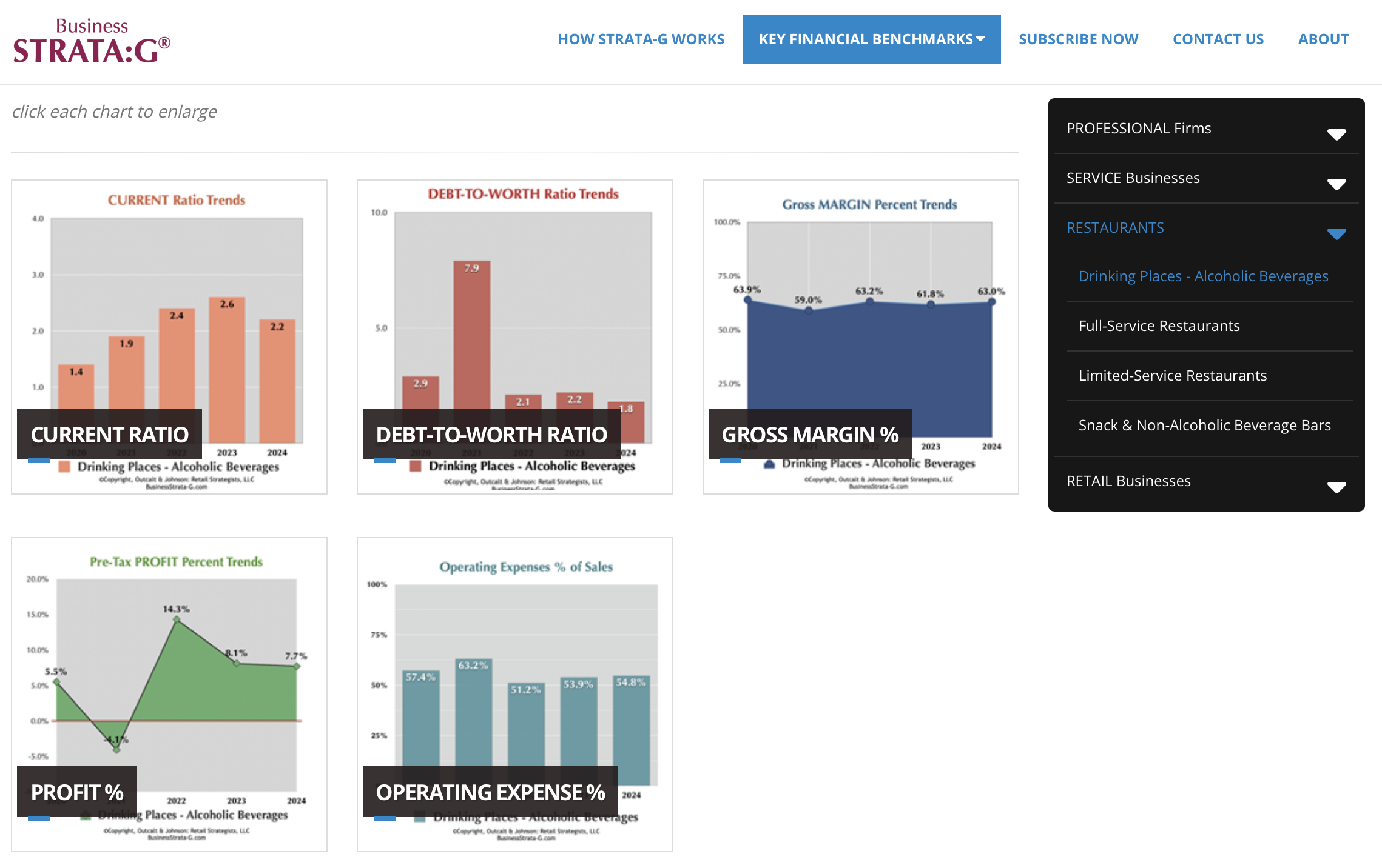 Use the menu links to go to each Restaurants industry to see their ratios.
